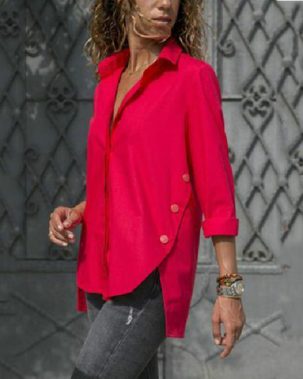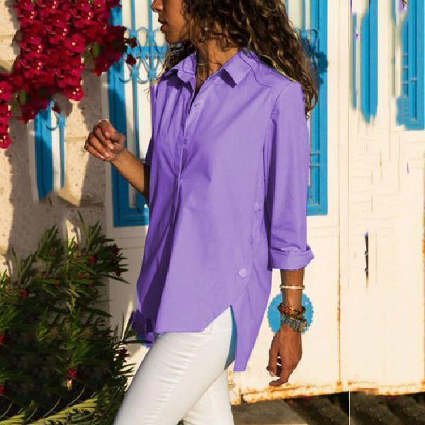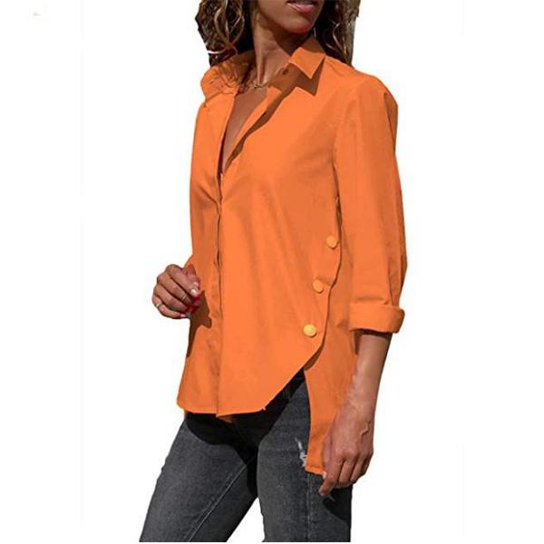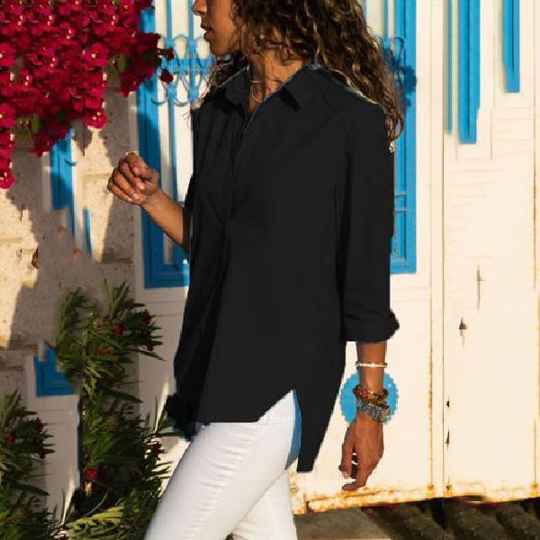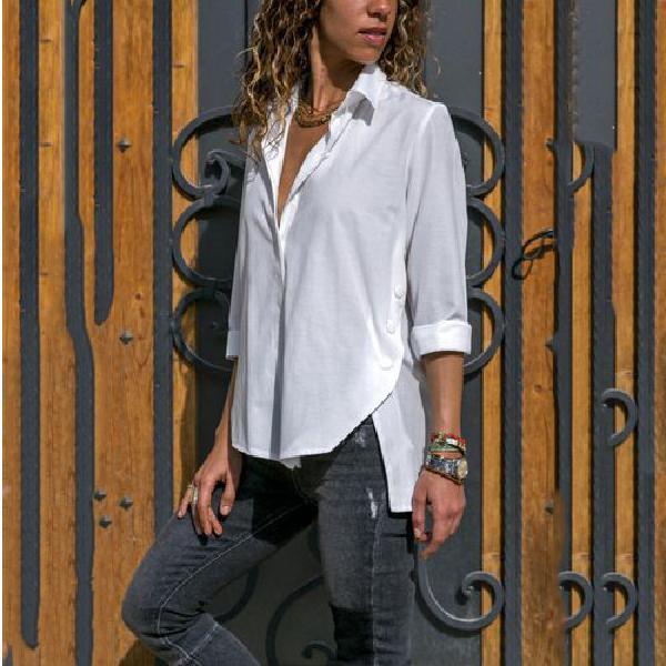 Women's Long-Sleeved Hem Split-Fork Irregular Blouses
