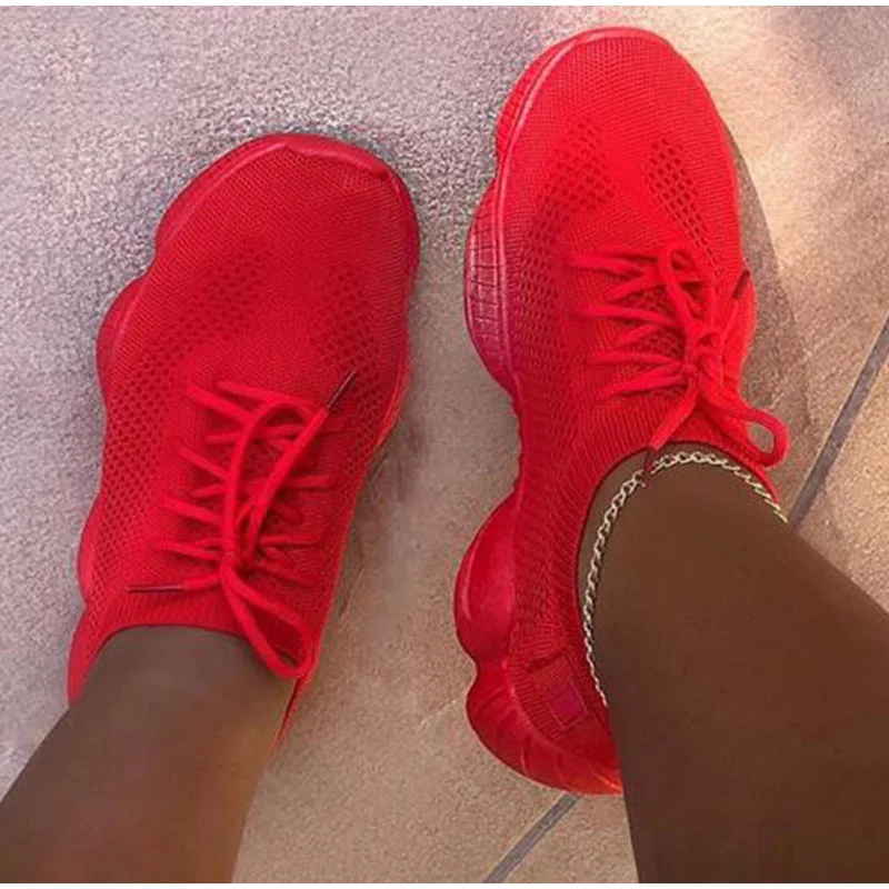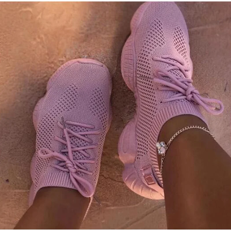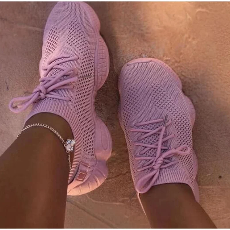 Women's Shoes Mesh Lace Up Breathable Casual Comfortable Solid Color Sneakers